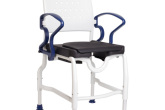 Chaise de douche et de toilettes avec assise percée rembourrée.