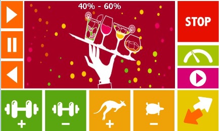 Le grand écran tactile couleur (7 ”), permet de garder la progression de l'exercice sous contrôle à tout moment, avec des informations claires et détaillées et il est utilisé pour régler rapidement les paramètres de la thérapie, au moyen de gros boutons. Les boutons sont mis en évidence avec différentes couleurs pour leurs différentes fonctions ainsi que des pictogrammes pour une compréhension plus facile. Les couleurs sont vives mais pas trop lumineuses afin d'éviter la fatigue oculaire.