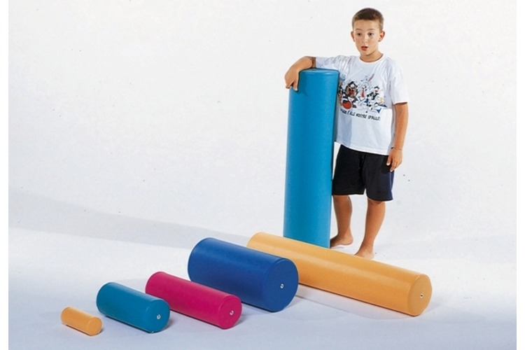 Coussin de forme cylindrique en mousse expansée à densité variable avec un revêtement en similicuir, ignifuge à haute résistance et facilement lavable.