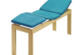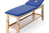 Table d'examen et de traitement en hêtre à deux sections et hauteur fixe 78 cm. Les sections ont une plus grande largeur de 80 cm, et le dossier proclive jusqu'à 45° est réglable manuellement . Ce modèle prévoit un dossie avec trou nez-bouche. Possibilité de commander séparément un bouchon pour le trou nez-bouche.