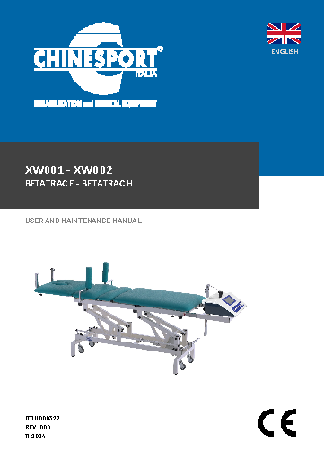 Le bouchon nez-bouche est de série. Pour effectuer les tractions, la table est équipée de deux éléments chromés de fixation applicables sur la section de tête, de deux supports ultérieurs rembourrés pour le positionnement axillaire et d'une poignée avec une potence réglable en hauteur pour maintenir la corde de traction. En cas de traction lombaire la section sous-jacente est coulissante afin de réduire la friction entre le patient et la superficie de la table. De plus et toujours à propos de l'exécution des tractions, la table est fournie avec des harnais de différentes dimensions pour l'application cervicale, pelvienne et thoracique et de quelques coussins pour un positionnement confortable du patient et une traction longitudinale correcte de la colonne vertébrale. La table est équipée de quatre roulettes pivotantes avec un système de verrouillage centralisé et le châssis à la base est réglable en hauteur au moyen de quatre pieds indépendants qui permettent d'équilibrer un sol éventuellement irrégulier.